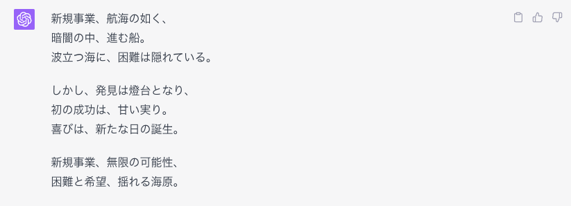 最後に新規事業企画の苦労と喜びを詩にしてもらいました。器用だ。