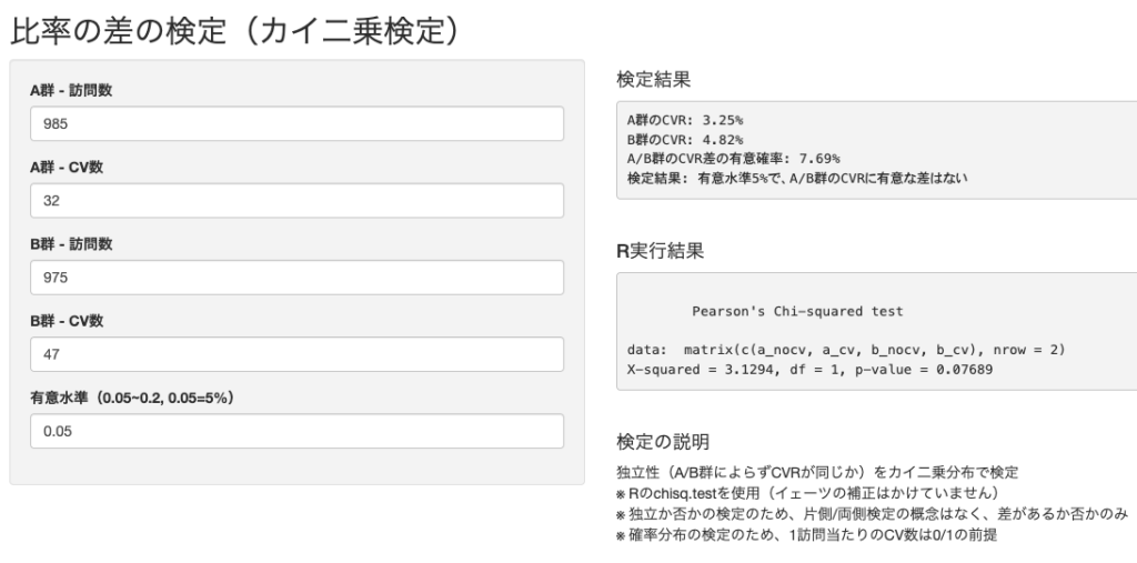 CVRにはカイ二乗検定を利用する